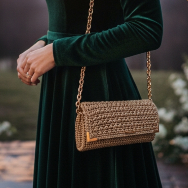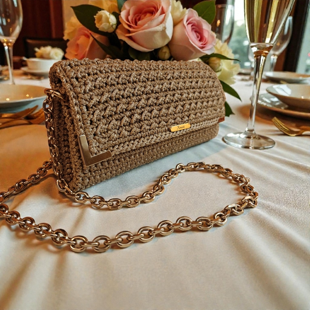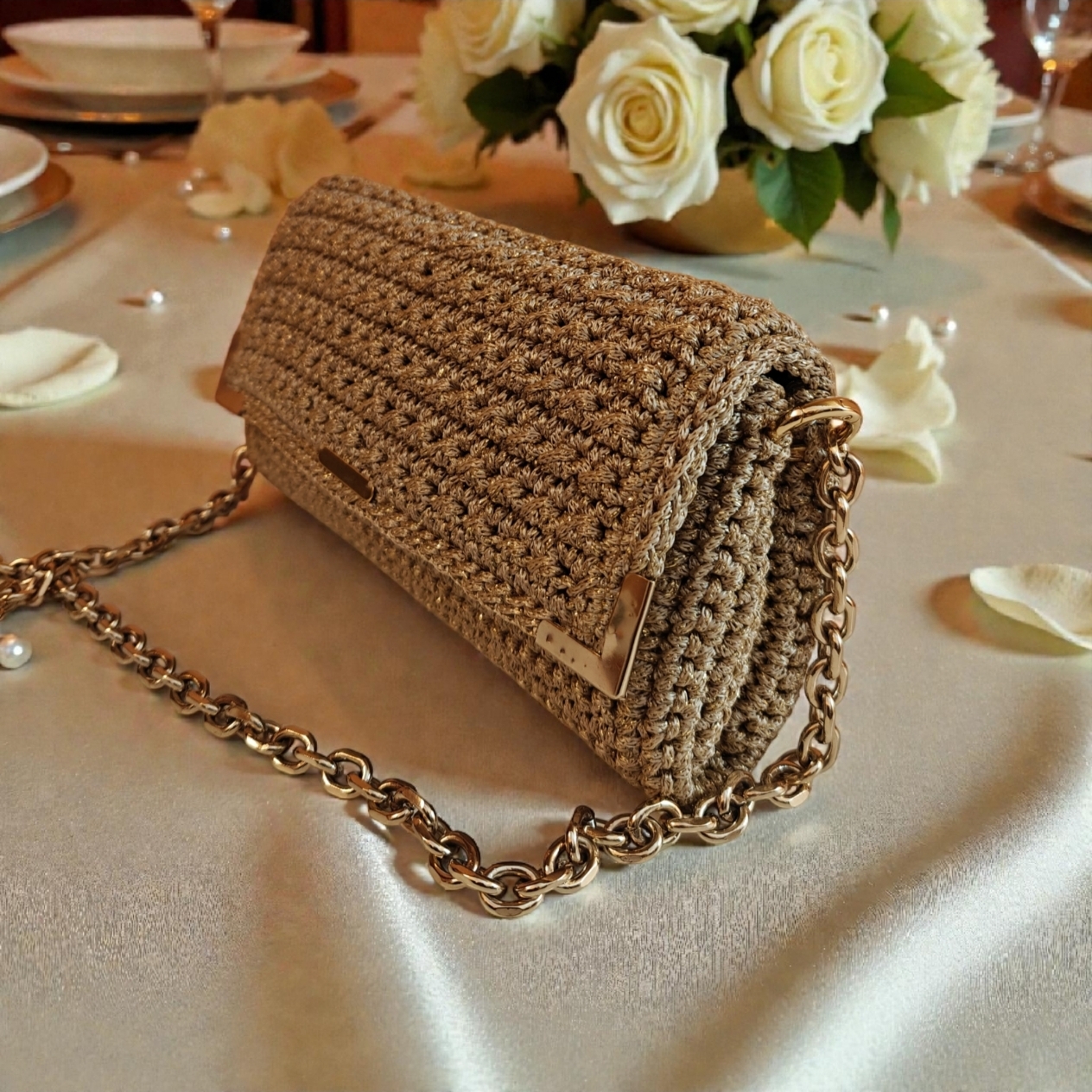 Χρώμα : χρυσαφίΕσωτερικά : φόδραΚλείσιμο τσάντας: καπάκι & μαγνητάκια Λουρί : αλυσίδα, σε χρυσό