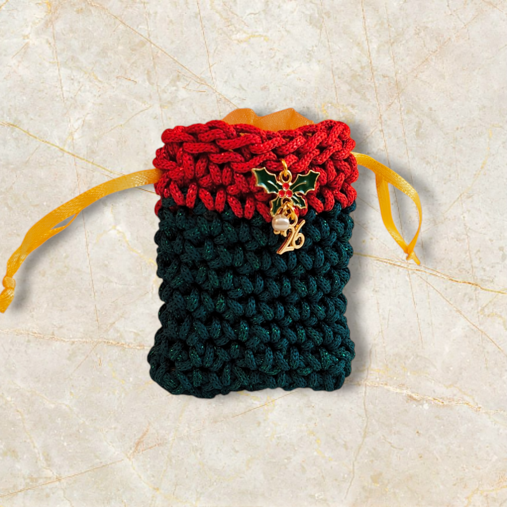 Χειροποίητο γούρι '26 αρωματικό πουγκί σμαραγδί-κόκκινο