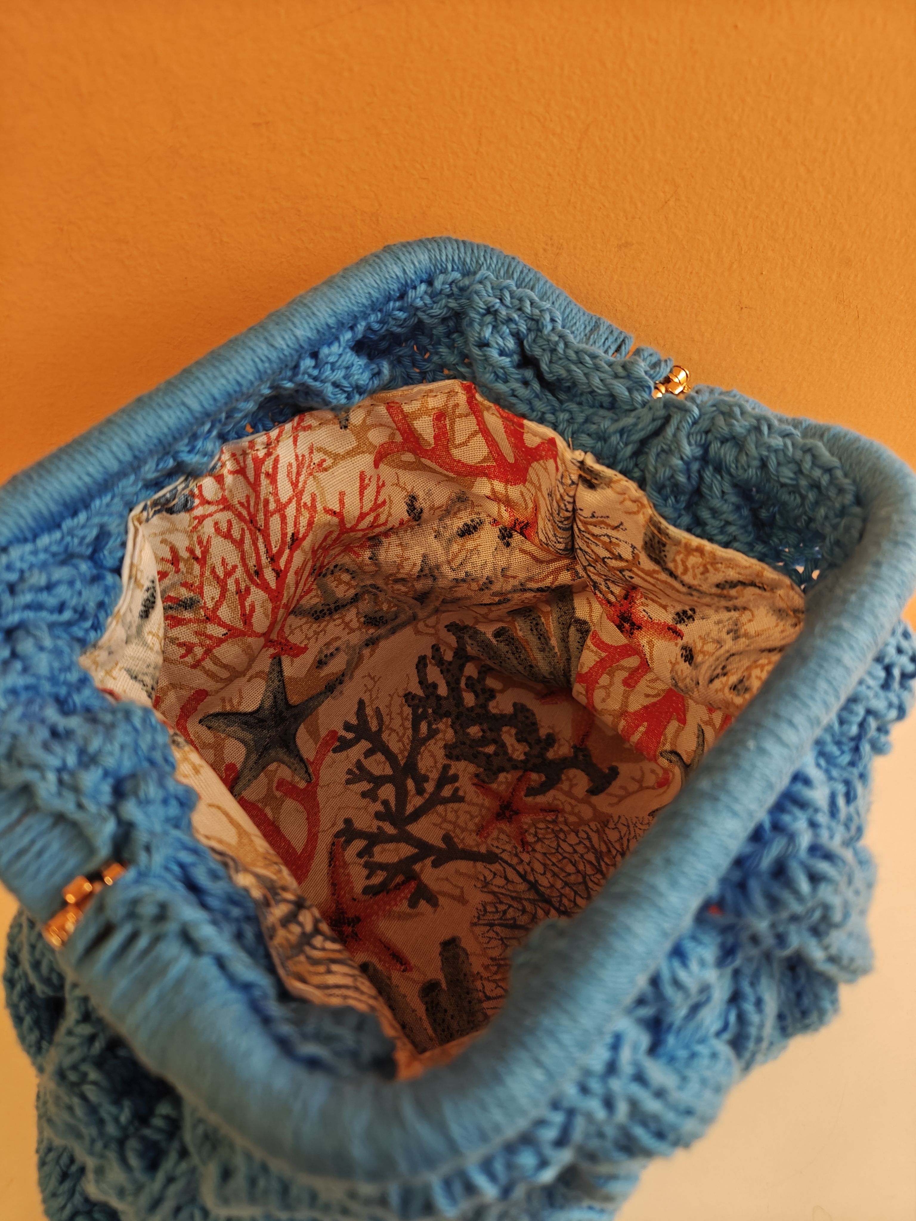 Χρώμα: γαλάζιοΕσωτερικά : φόδρα Κλείσιμο τσάντας: μεταλλικό έλασμαΔιαστάσεις: 32εκ. Μ (κάτω) - 20εκ Μ (επάνω) x 24Y