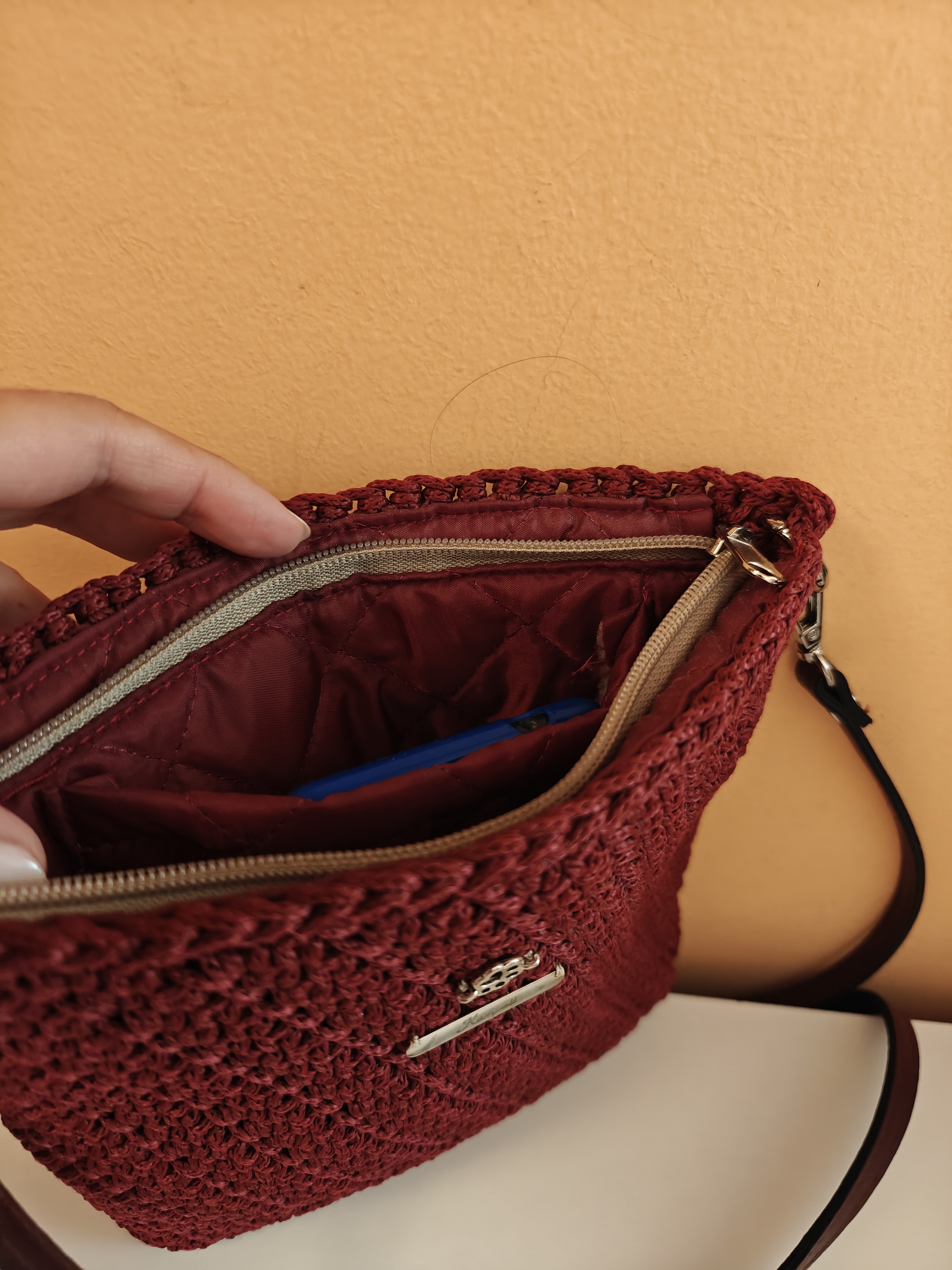 Χρώμα: μπορντώΛουρί: δερμάτινο eco χιαστί, Μπορντώ Κλείσιμο: φερμουάρΕσωτερικά: φόδρα