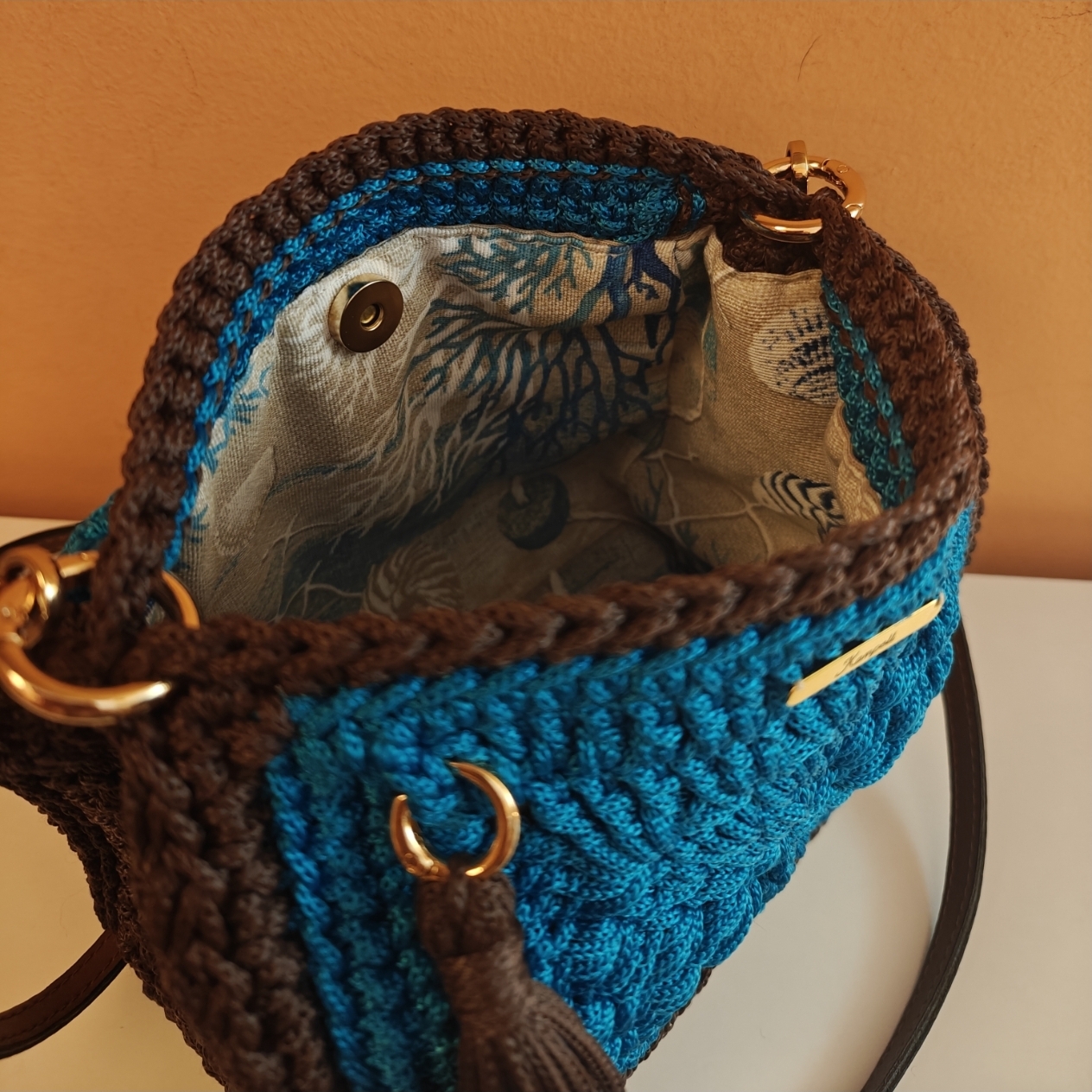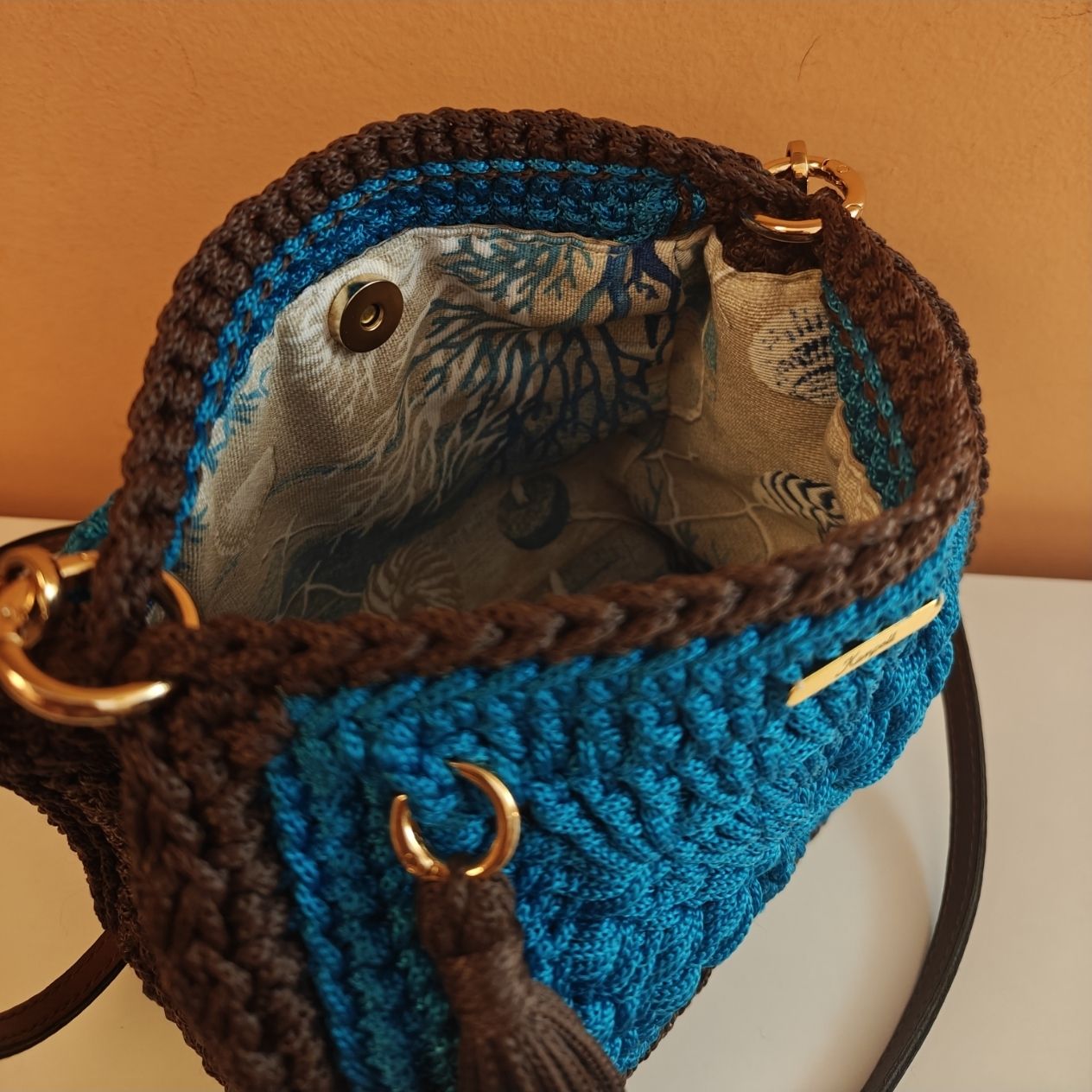Χειροποίητο πλεκτό τσαντάκι πράσινο τυρκουάζ-καφέ