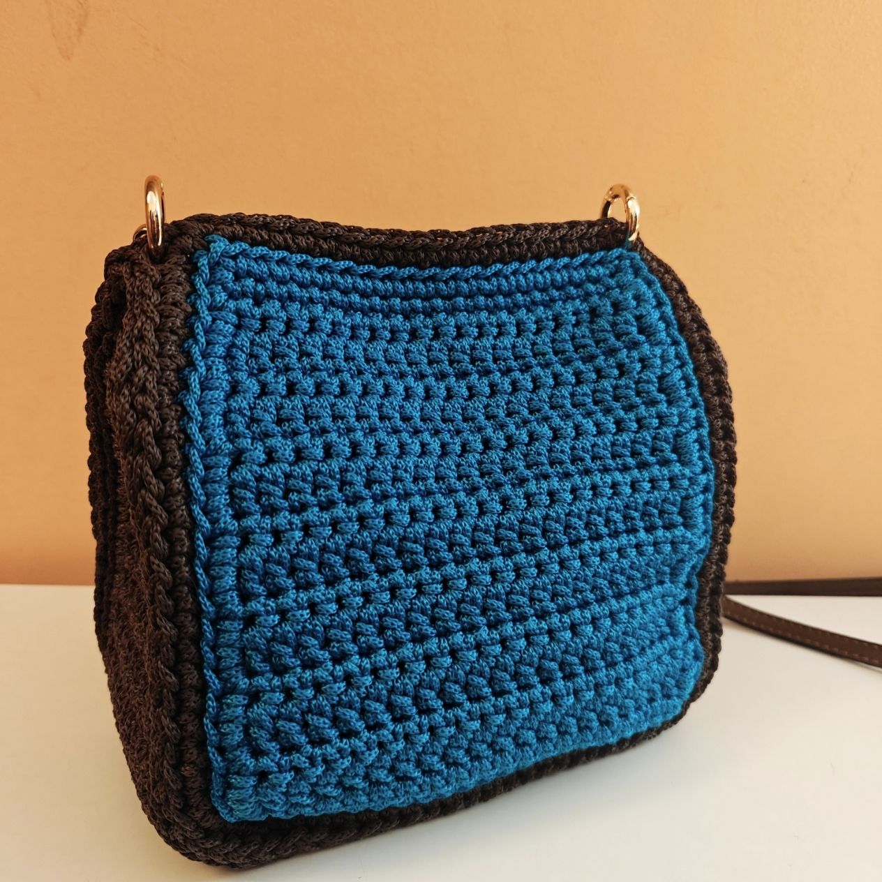 Custommade "One granny square" - Πλεκτό τσαντάκι τυρκουάζ-καφέ
