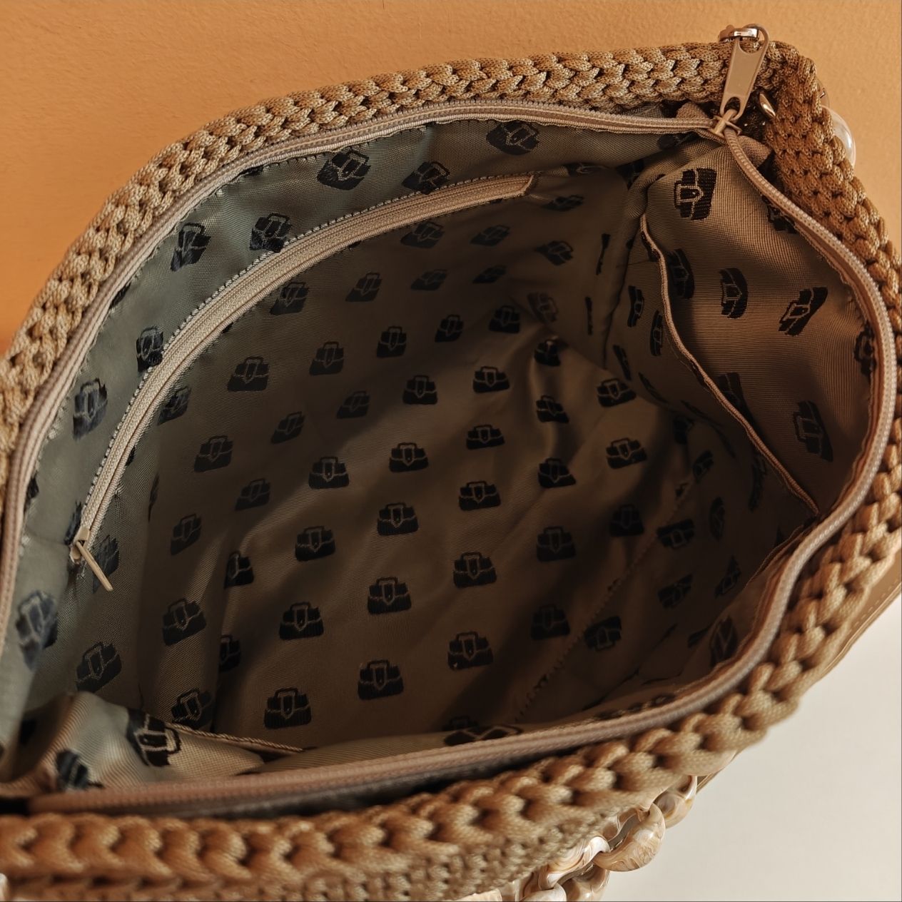 Χρώμα : μπεζΕσωτερικά : φόδρα με δυο τσέπες (μια για κινητό & μια με φερμουάρ) Κλείσιμο τσάντας: με φερμουάρΛουράκι : δερμάτινο μπεζ