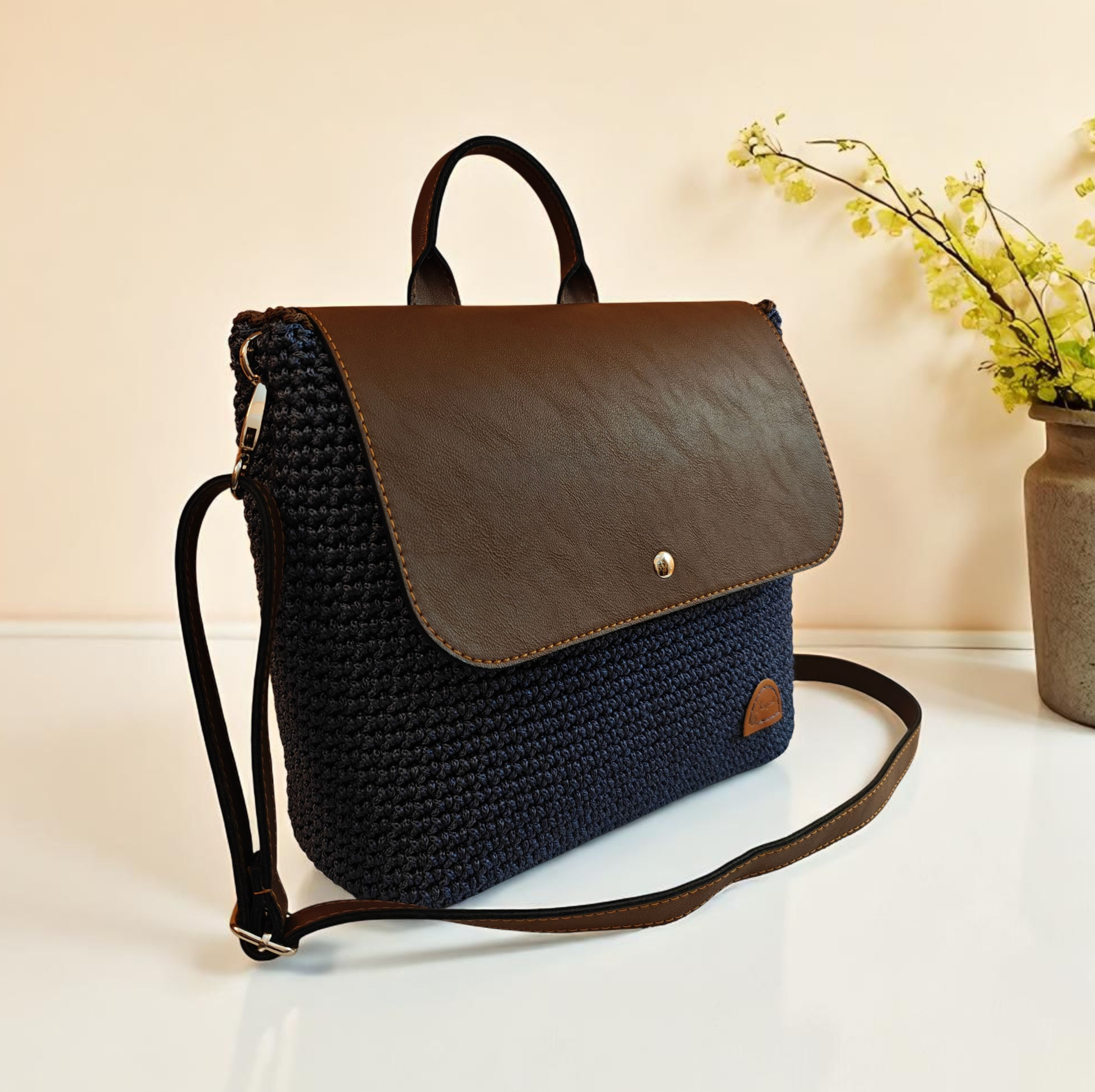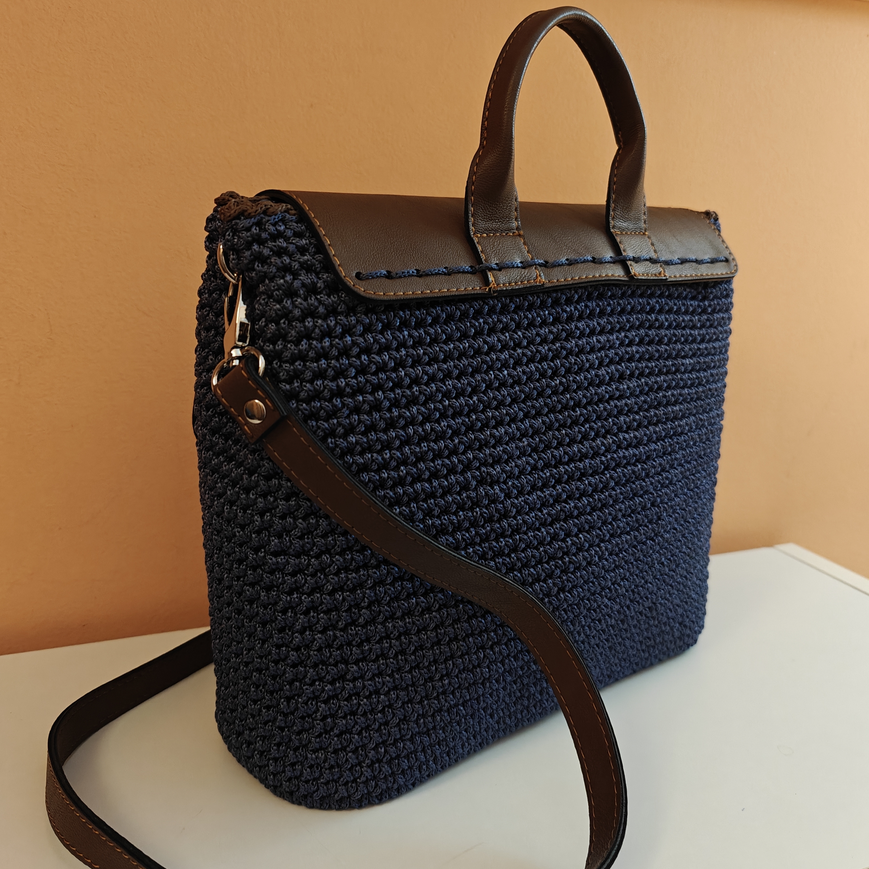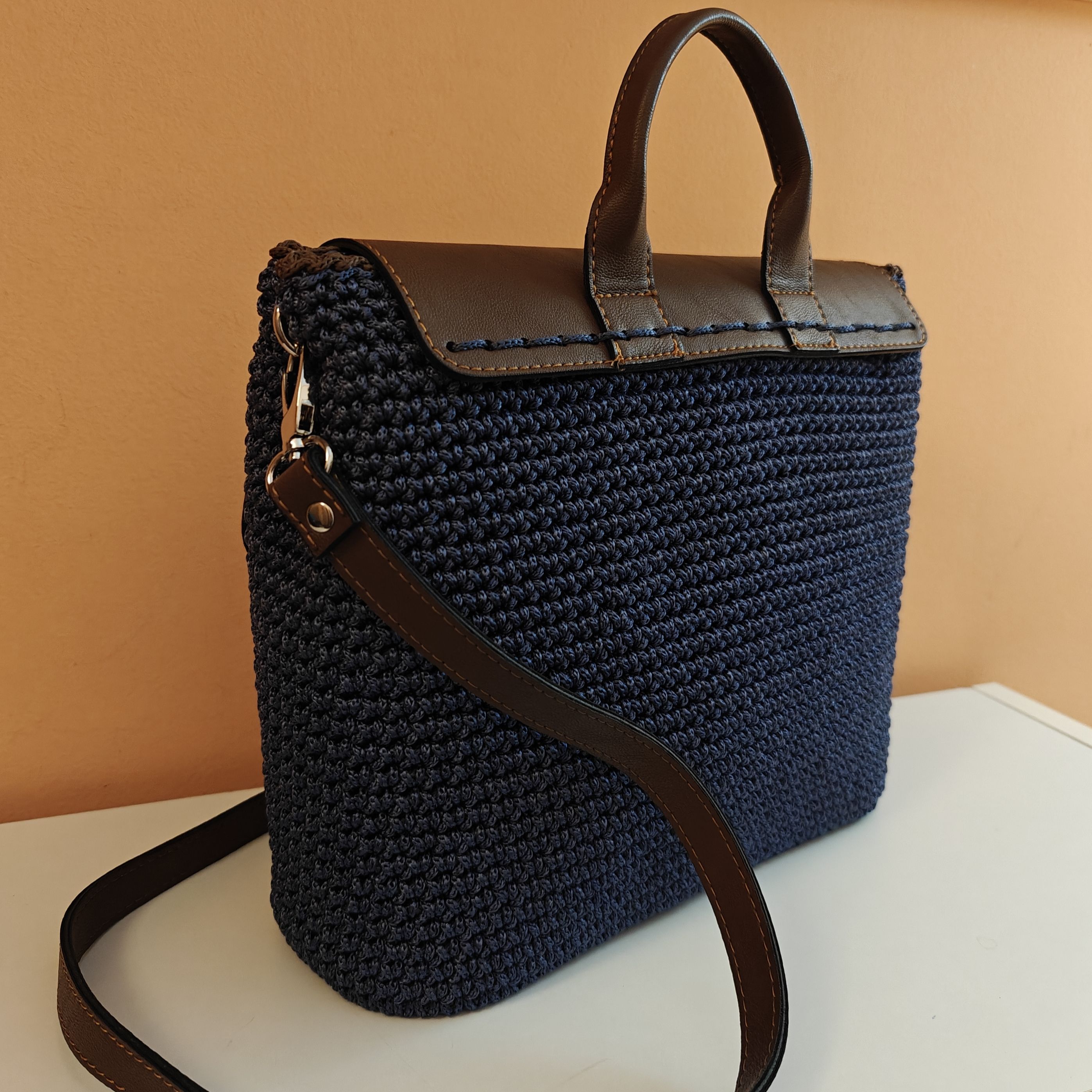 Χειροποίητη πλεκτή τσάντα με καπάκι