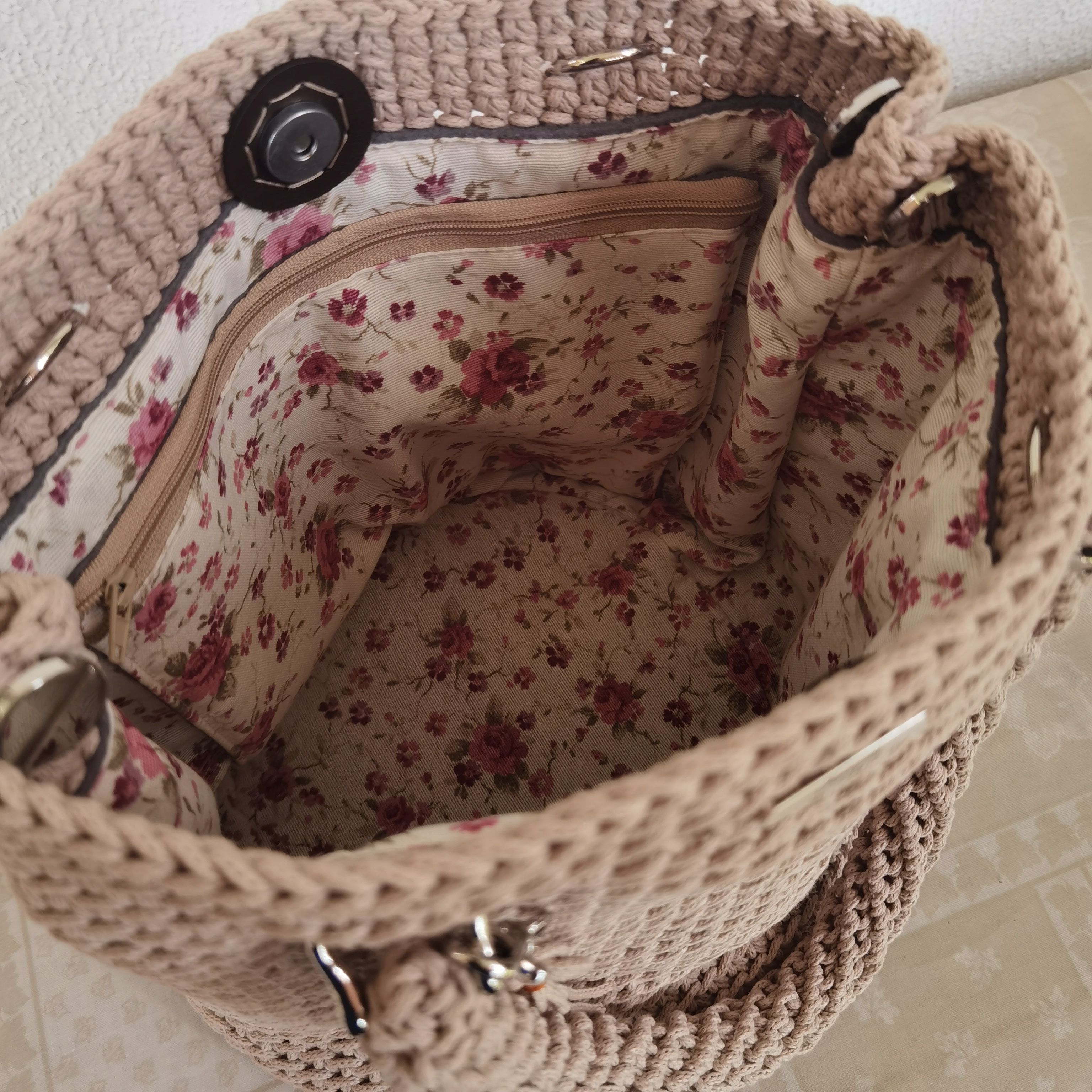 Χρώματα : μπεζΕσωτερικά : φόδρα με τρεις τσέπες Κλείσιμο : μαγνητάκιΛουρί : ώμου, πλεκτόΠάτος : δέρμα, μπεζ
