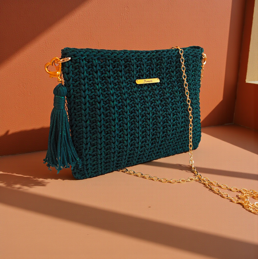 Χρώμα : σμαραγδί μεταλλιζέΚλείσιμο : μαγνητάκιΧεράκι : αλυσίδα χρυσαφί, χιαστί