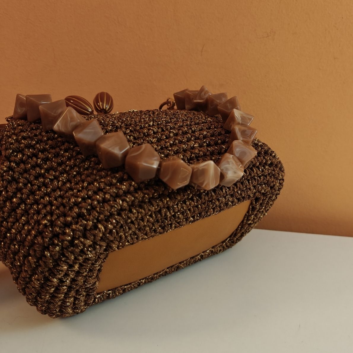 Χειροποίητη πλεκτή τσάντα Χρώμα: μεταλλιζέ ταμπάΚούμπωμα : μεταλλικό πλαίσιοΧεράκι: με πέτρες