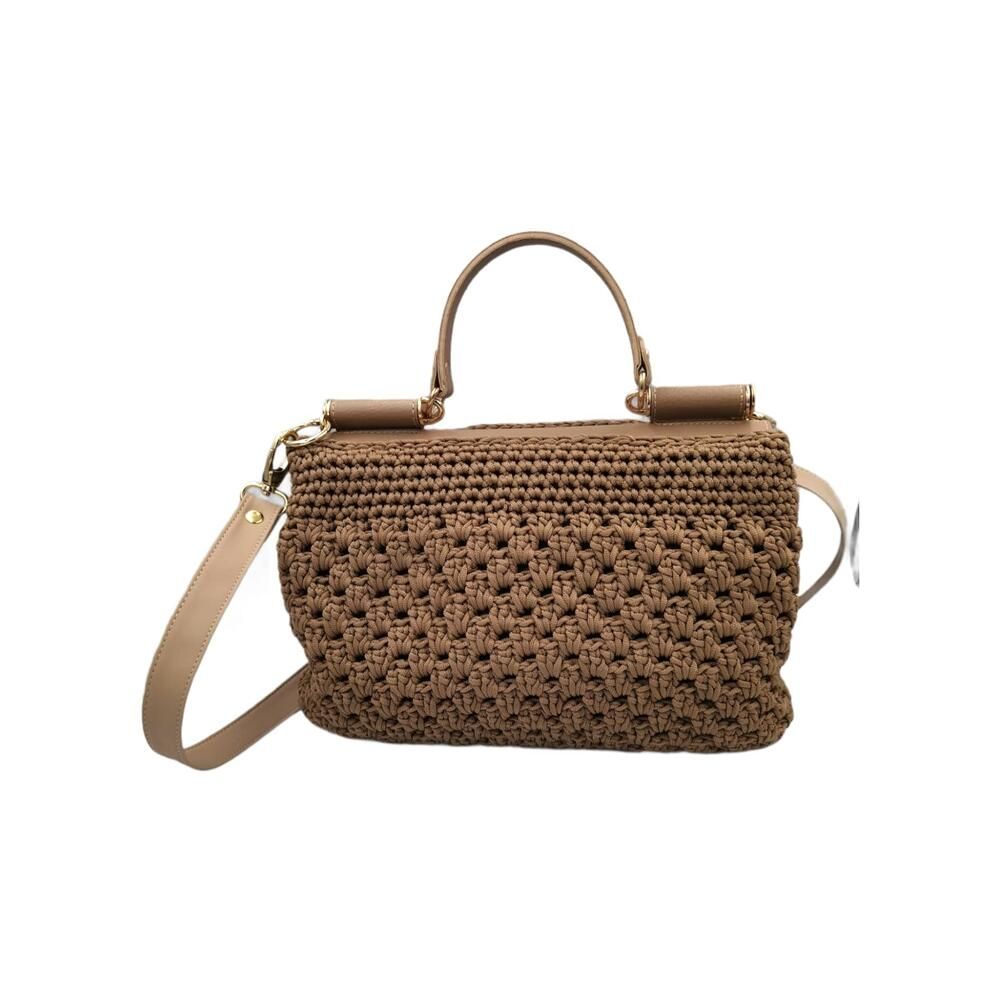 Χρώματα : μπεζ πούρου Εσωτερικά : φόδρα με δυο τσέπες Κλείσιμο : πλεκτό καπάκι Λουράκι : ρυθμιζόμενο χιαστί, μπεζ δέρμα Πάτος : ξύλινος (by Qrtos Creations)