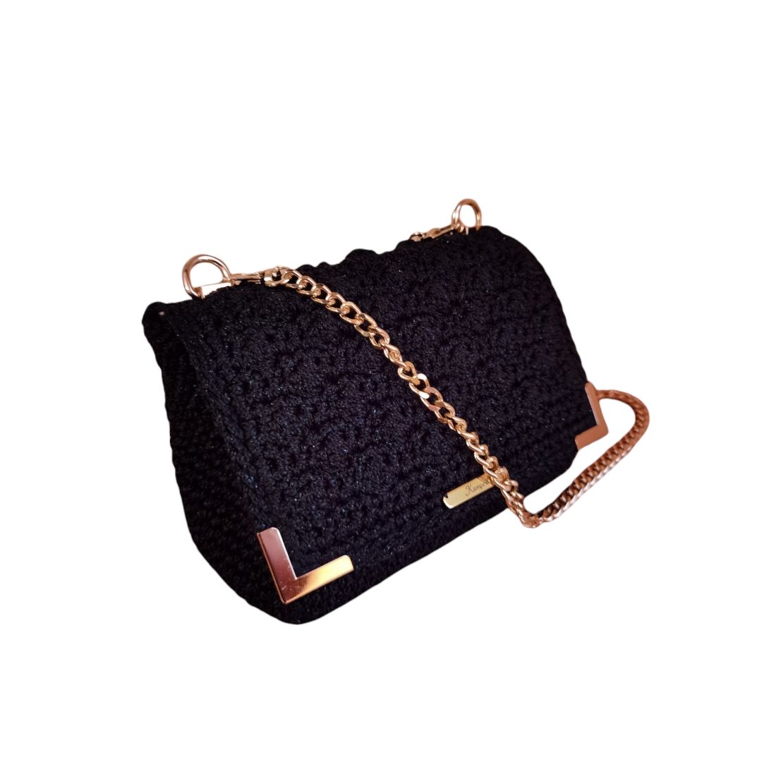 Μαύρο-μπρονζέ τσαντάκι pochette με leather yarn