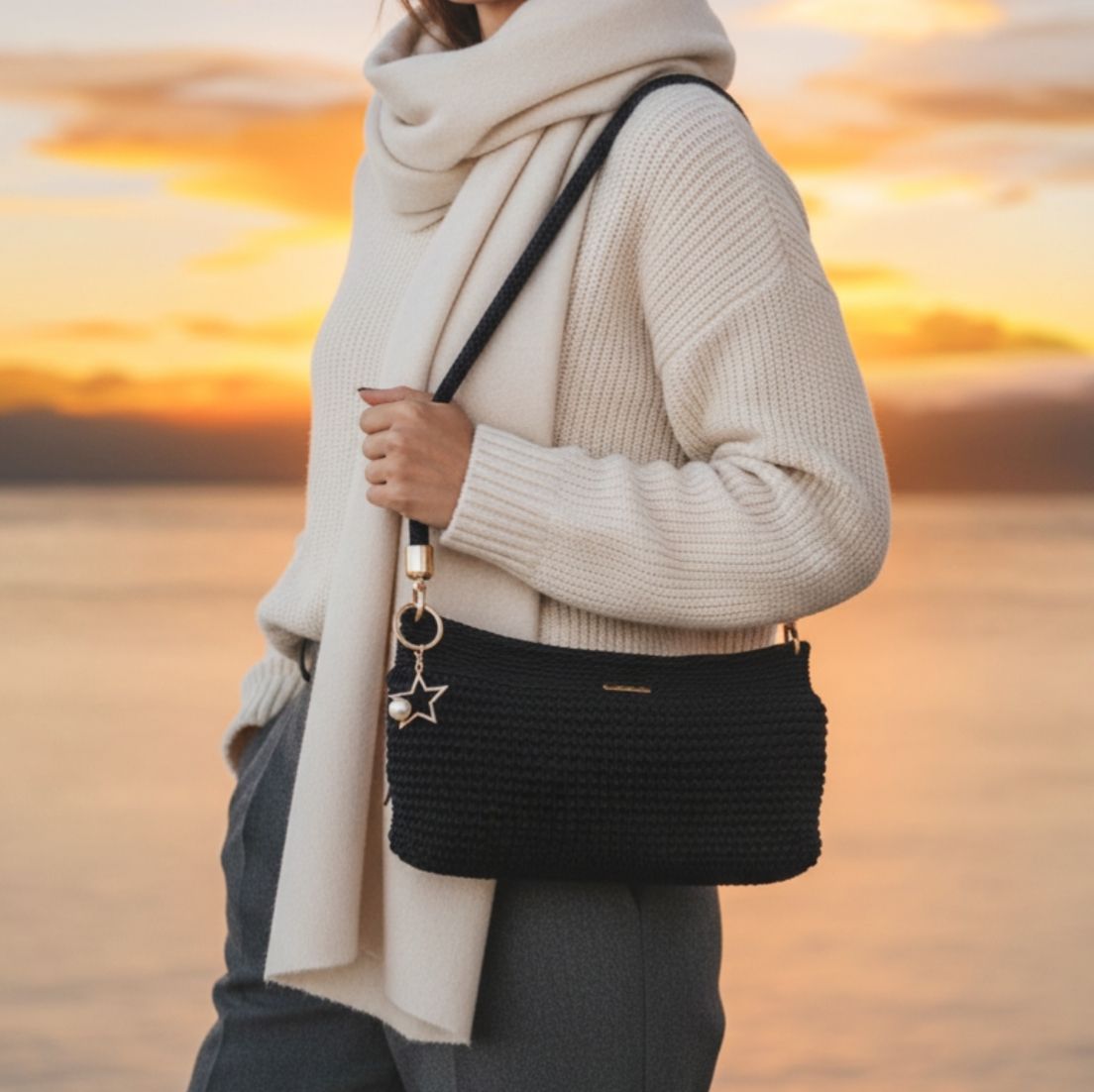 Χρώμα : μπλεΕσωτερικά : φόδρα με δυο τσέπες Κλείσιμο : φερμουάρ Λουρί : ώμου, υφασμάτινο (πλεκτό)Πάτος : ξύλινος by Qrtos Creations