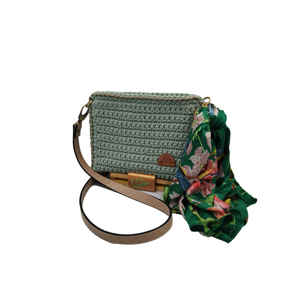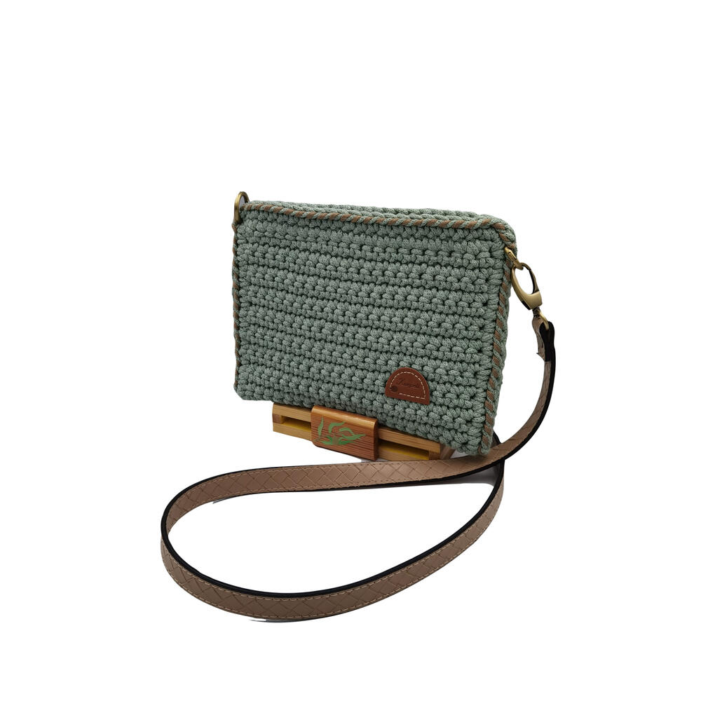 Χρώμα : βεραμάν Εσωτερικά : φόδρα με μια τσέπηΕξωτερικά: πλεκτή τσέπη με φερμουάρΚλείσιμο : φερμουάρ Λουρί : χιαστί, μπεζ δέρμα