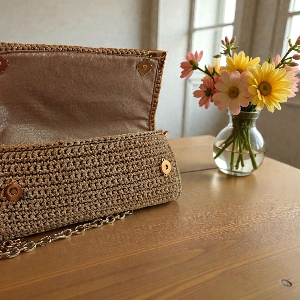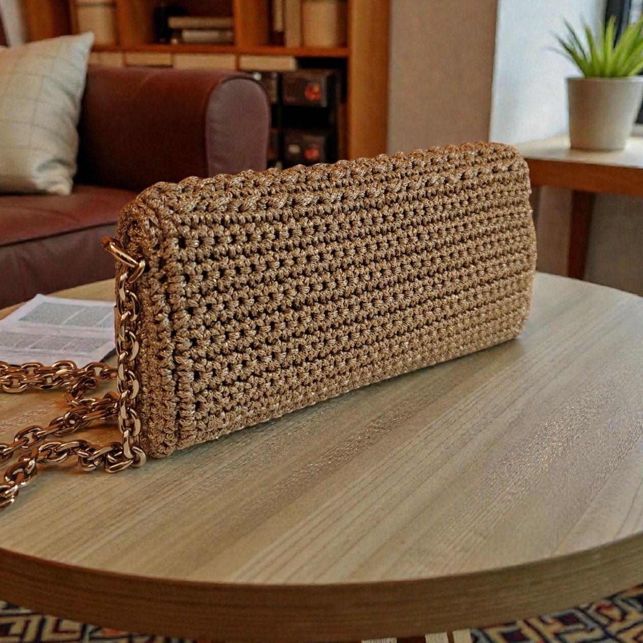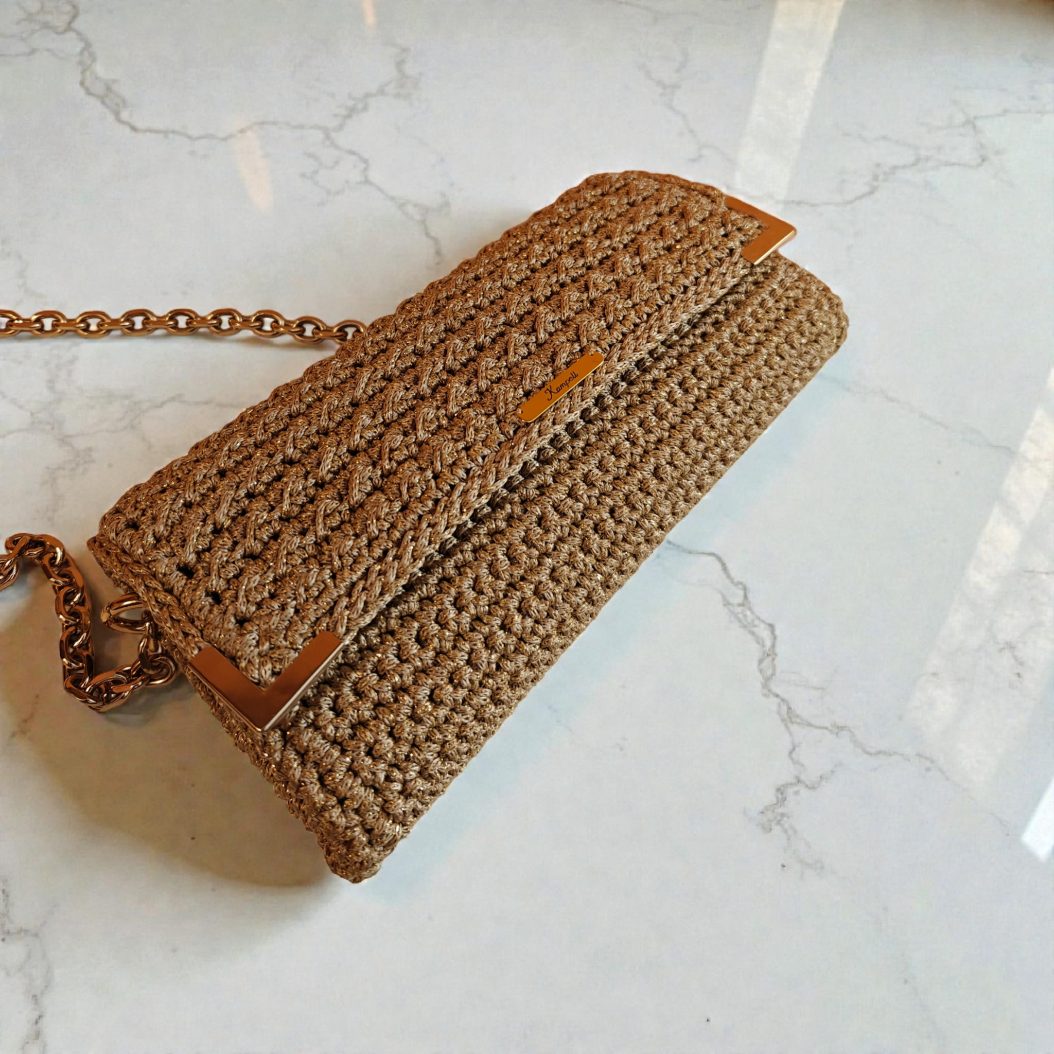 Χρώμα : χρυσαφίΕσωτερικά : φόδραΚλείσιμο τσάντας: καπάκι & μαγνητάκια Λουρί : αλυσίδα, σε χρυσό