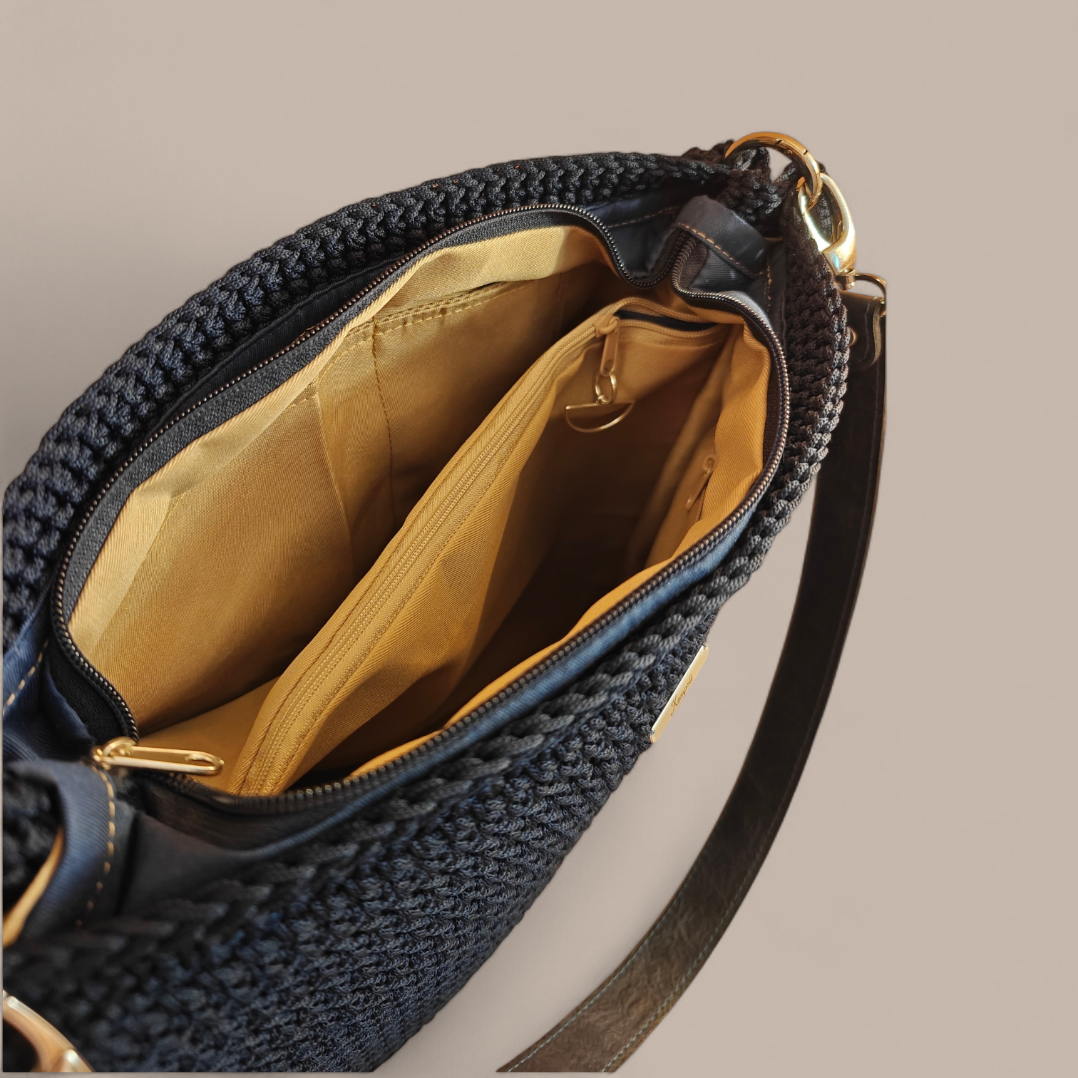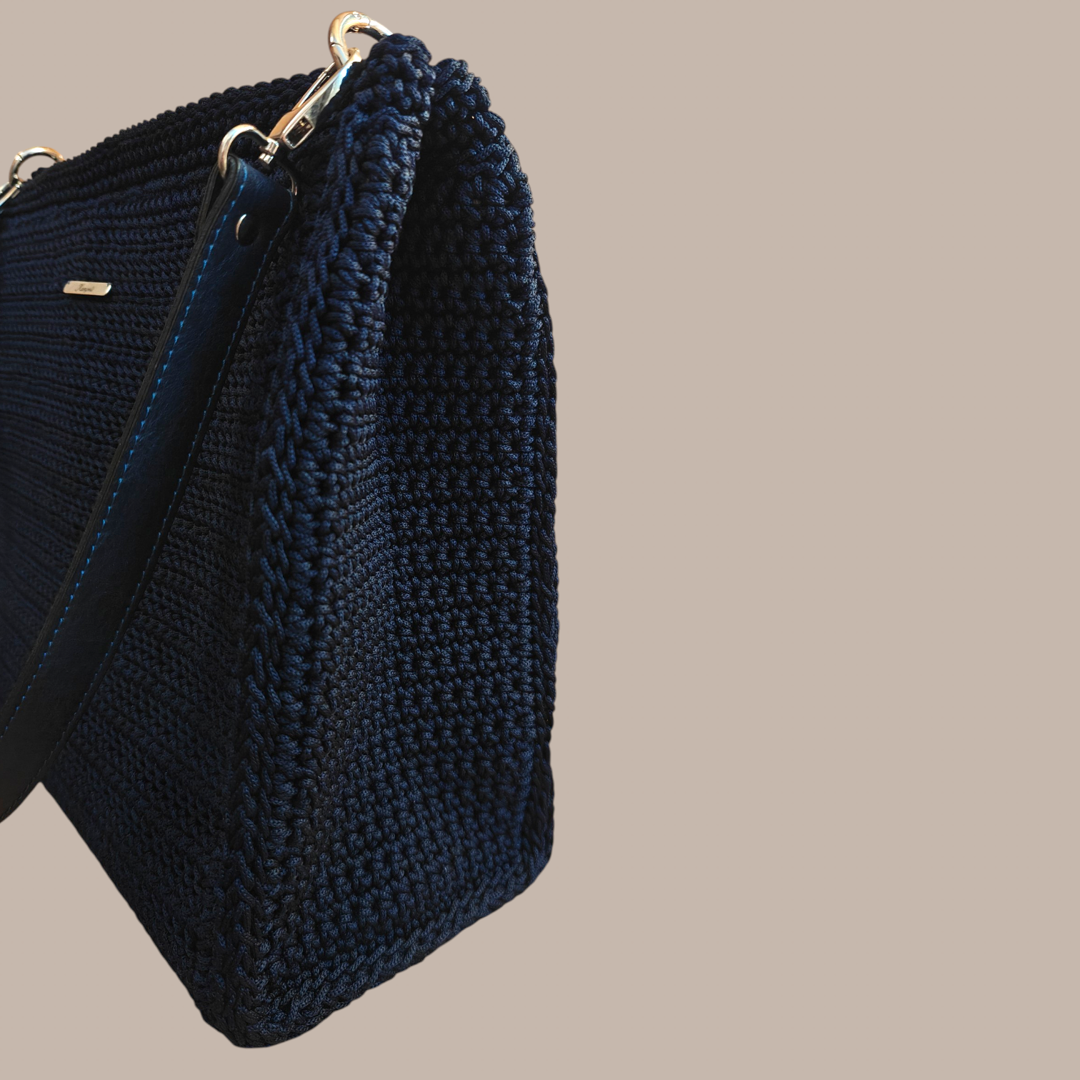 Χειροποίητη πλεκτή τσάντα μπλε