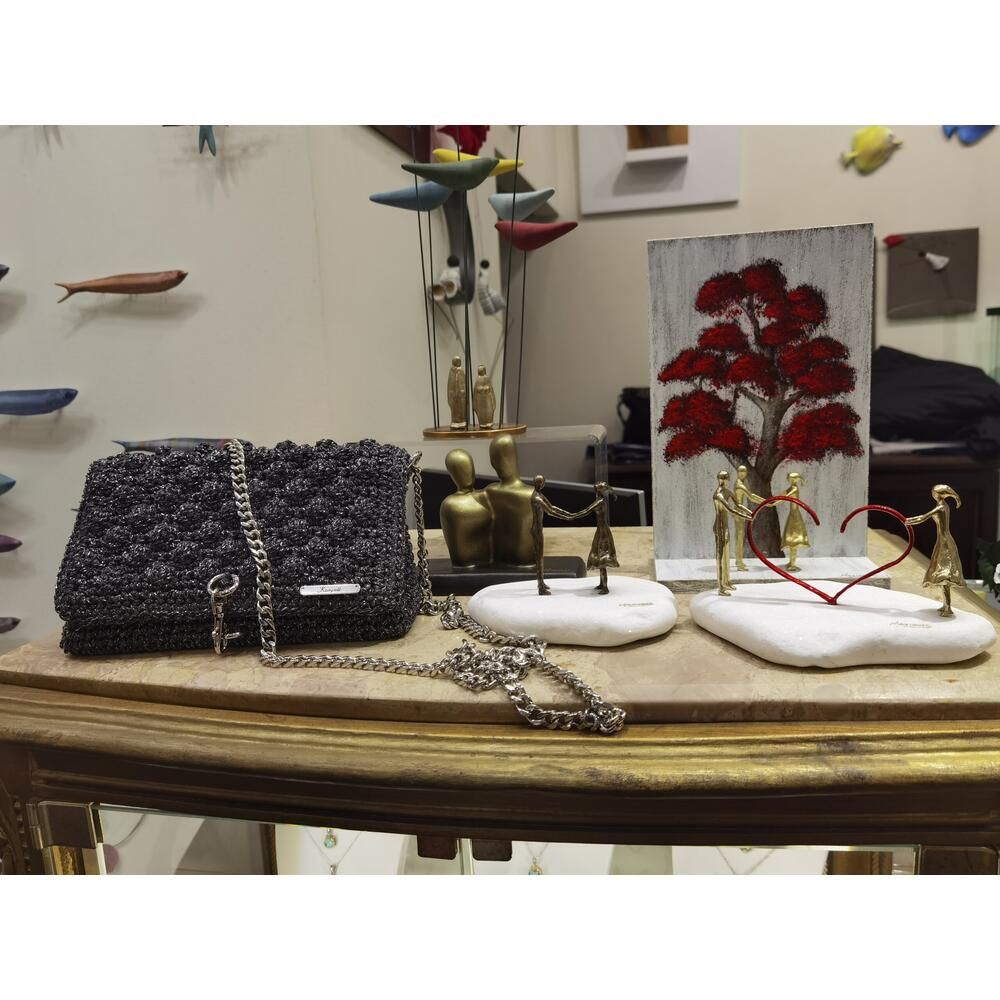 Χρώμα: γκρίΕσωτερικά : φόδρα με ένα τσεπάκιΚλείσιμο τσάντας: πλεκτό καπάκι & μαγνητάκιαΛουράκι : αλυσίδα σε νίκελ, χιαστί