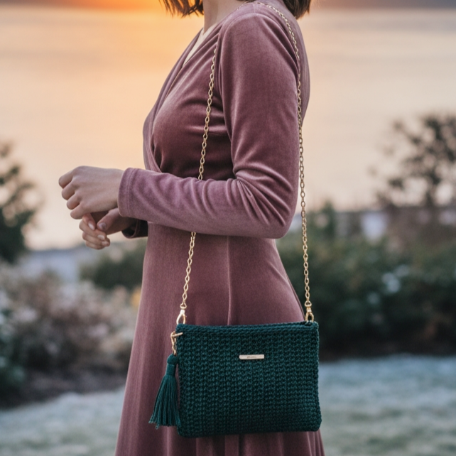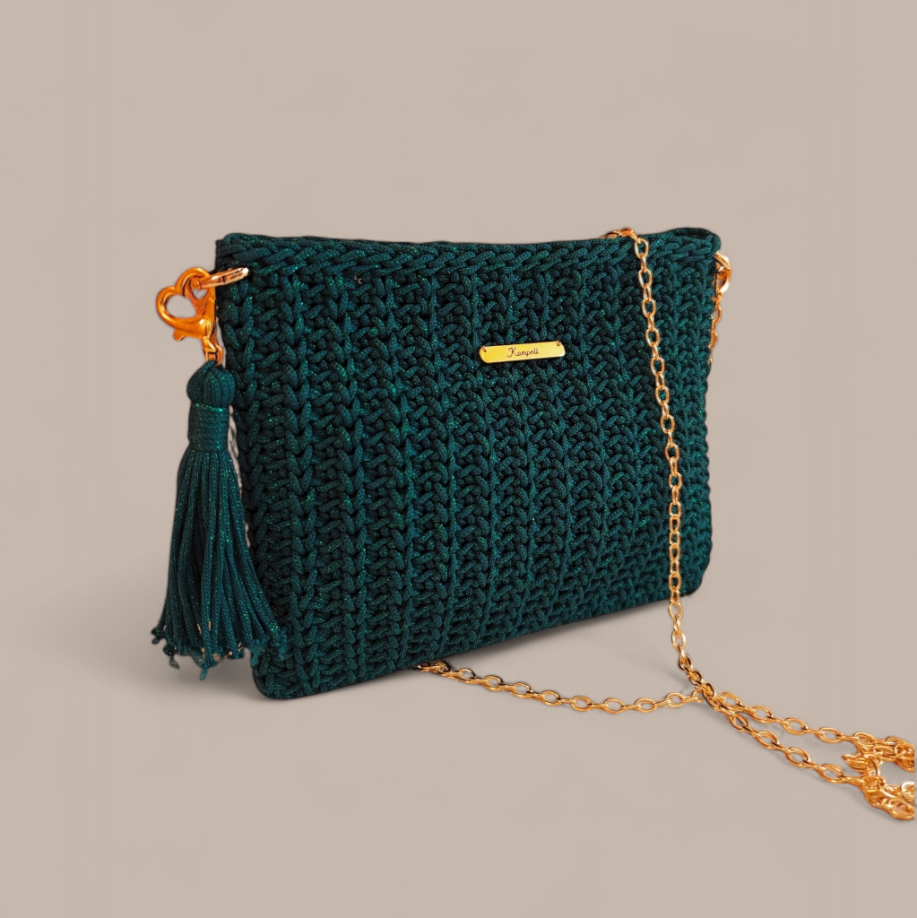 Χρώμα : σμαραγδί μεταλλιζέΚλείσιμο : μαγνητάκιΧεράκι : αλυσίδα χρυσαφί, χιαστί