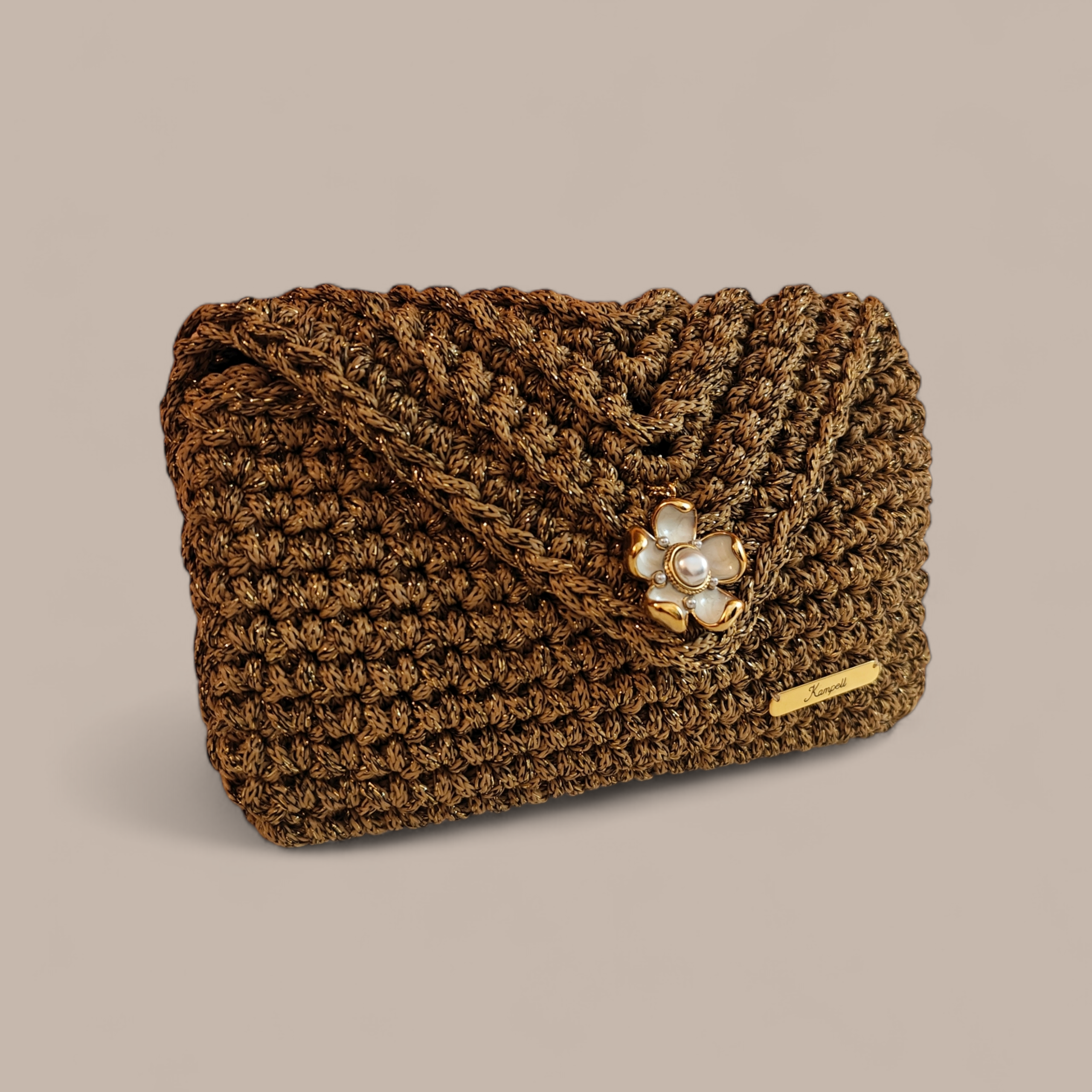 Χρώμα : μπεζ χρυσόΕσωτερικά : δυο θήκες (χωράει κινητό)Κλείσιμο τσάντας: πλεκτό καπάκι & μαγνητάκι*μπορεί να προστεθεί λεπτή αλυσίδα (συν 5,00)
