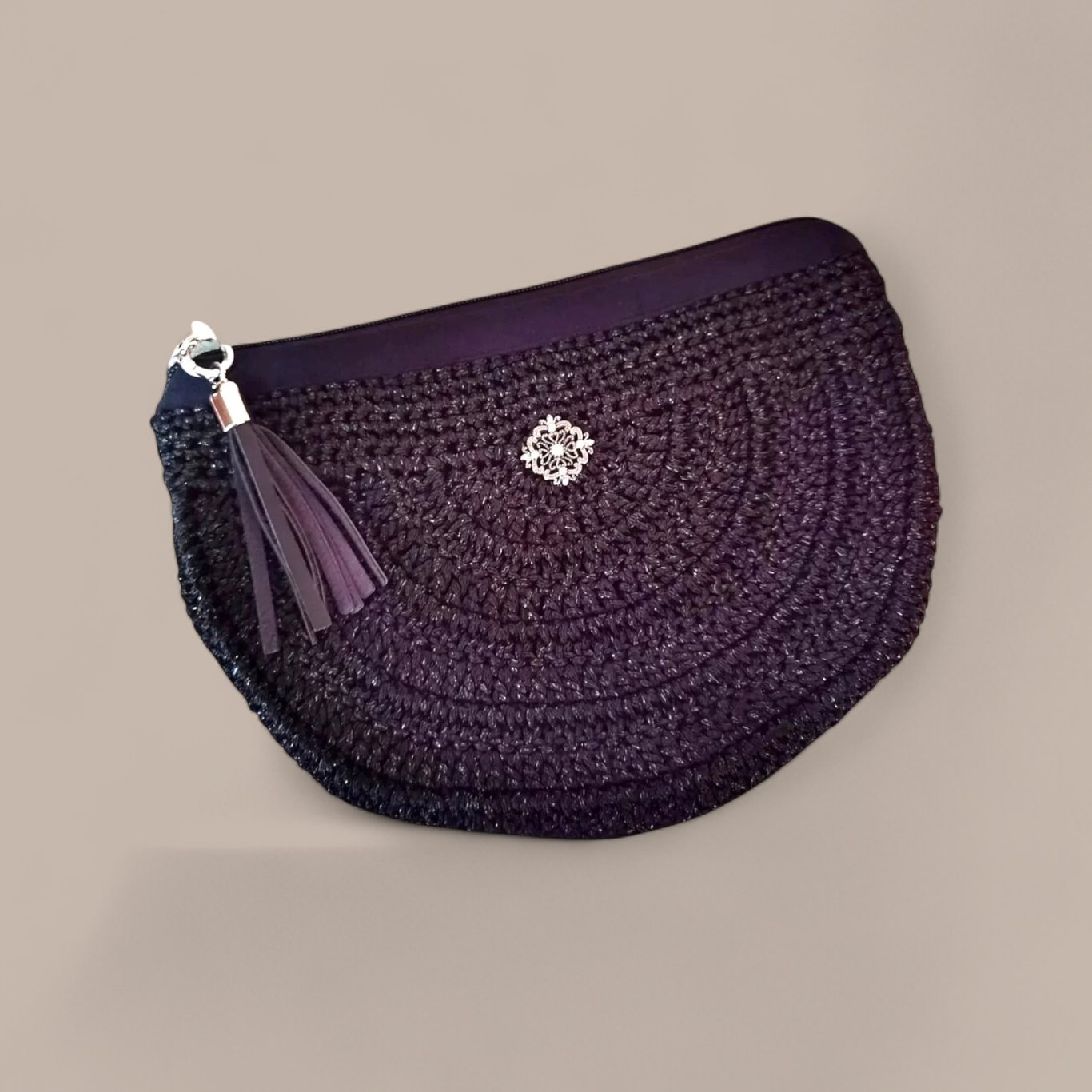 Xειροποίητο πλεκτό τσαντάκι φάκελος σε σχήμα halfmoon