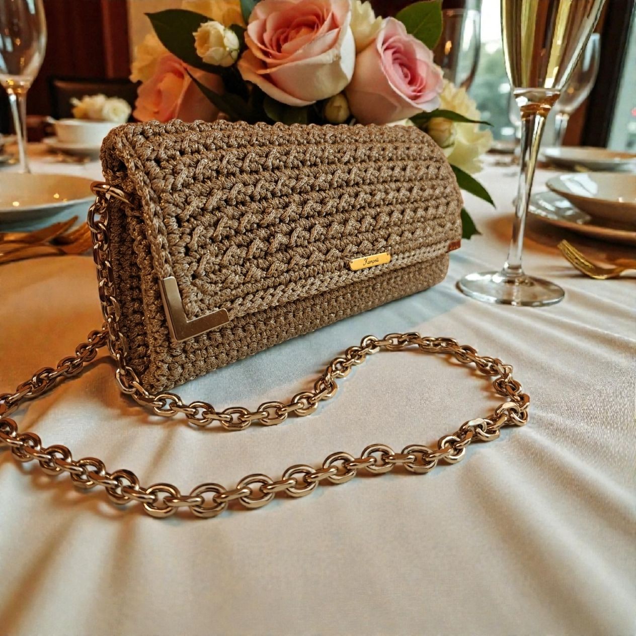 Μοναδικό, χειροποίητο χρυσαφί τσαντάκι με καπάκι