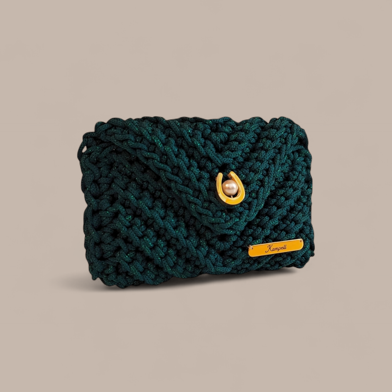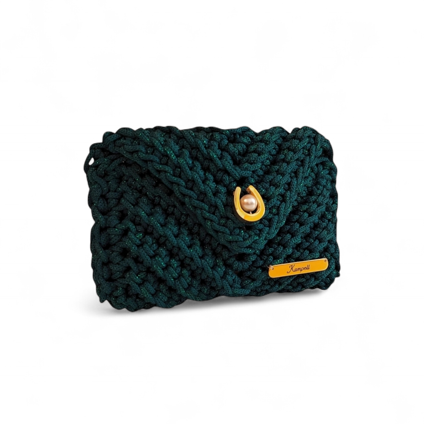 Πορτοφολάκι σμαραγδί με ανάγλυφη πλέξη "V"