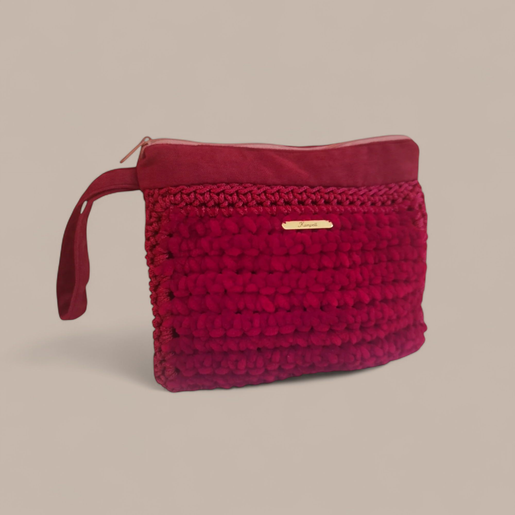 Χειροποίητο πλεκτό τσαντάκι καρπού μπορντώ