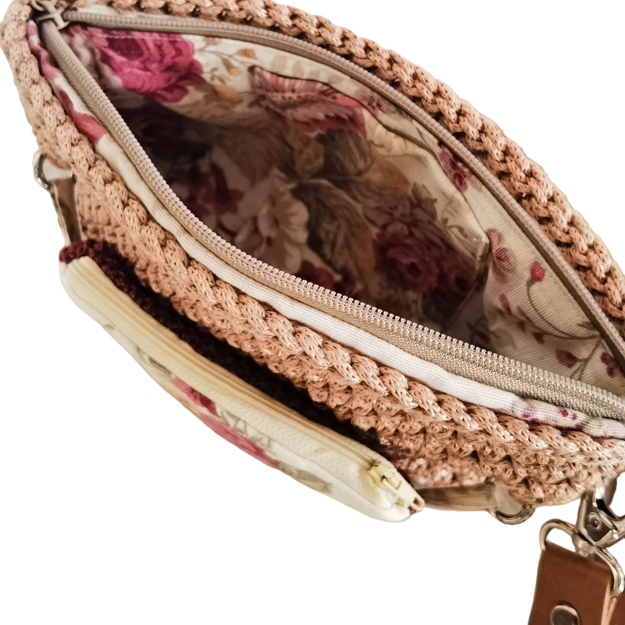 Χειροποίητο τσαντάκι μέσης διπλό ολόπλεκτο & θήκη υφασμάτινη για λιχουδιές