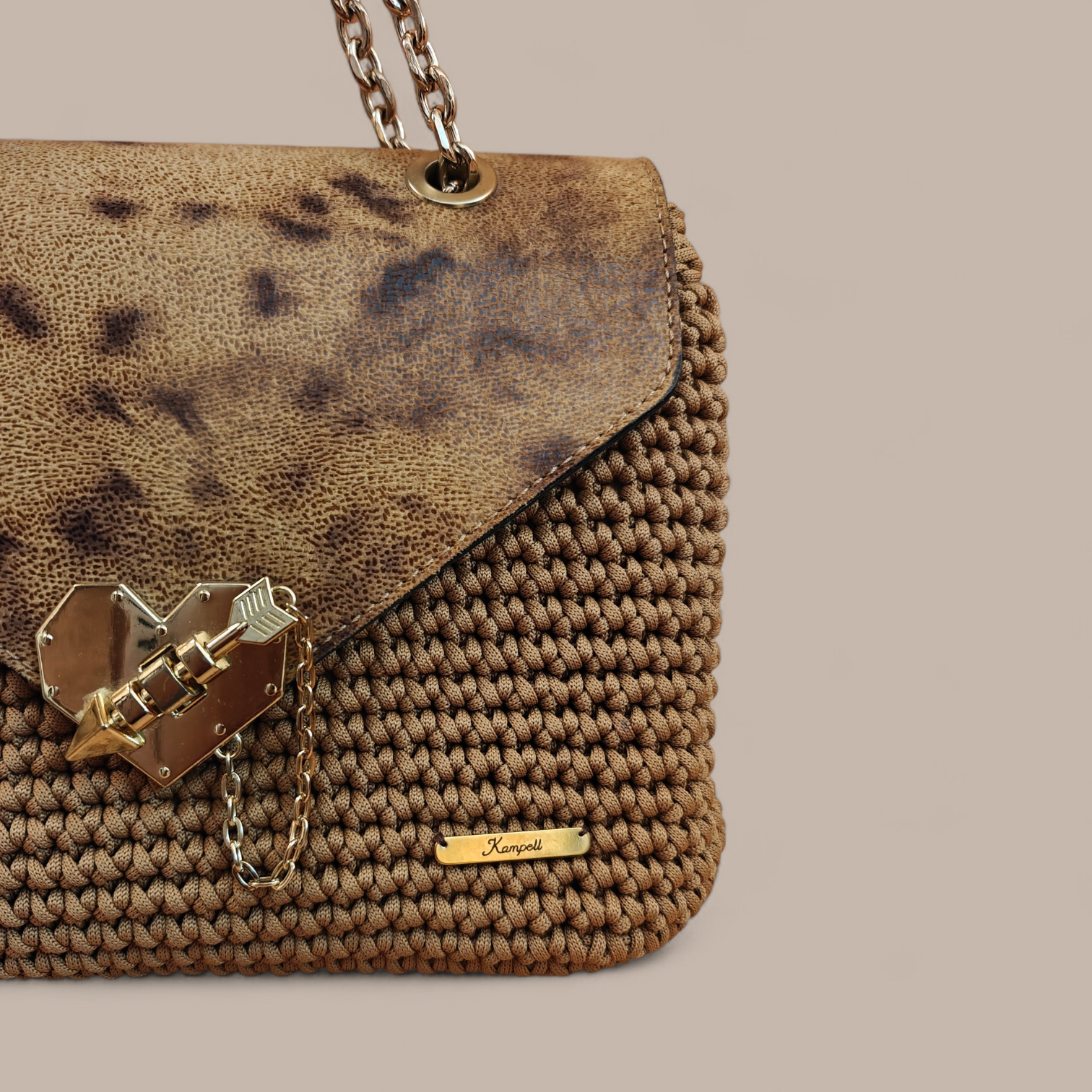 Χρώματα : μπεζ-καμελΕσωτερικά : φόδρα δερματίνης με δυο τσέπες (μια με φερμουάρ & μια χωρίς)Κλείσιμο : καπάκι με κούμπωμα καρδιά Λουράκι : αλυσίδα ώμου Διαστάσεις: 23Μ x 21Y
