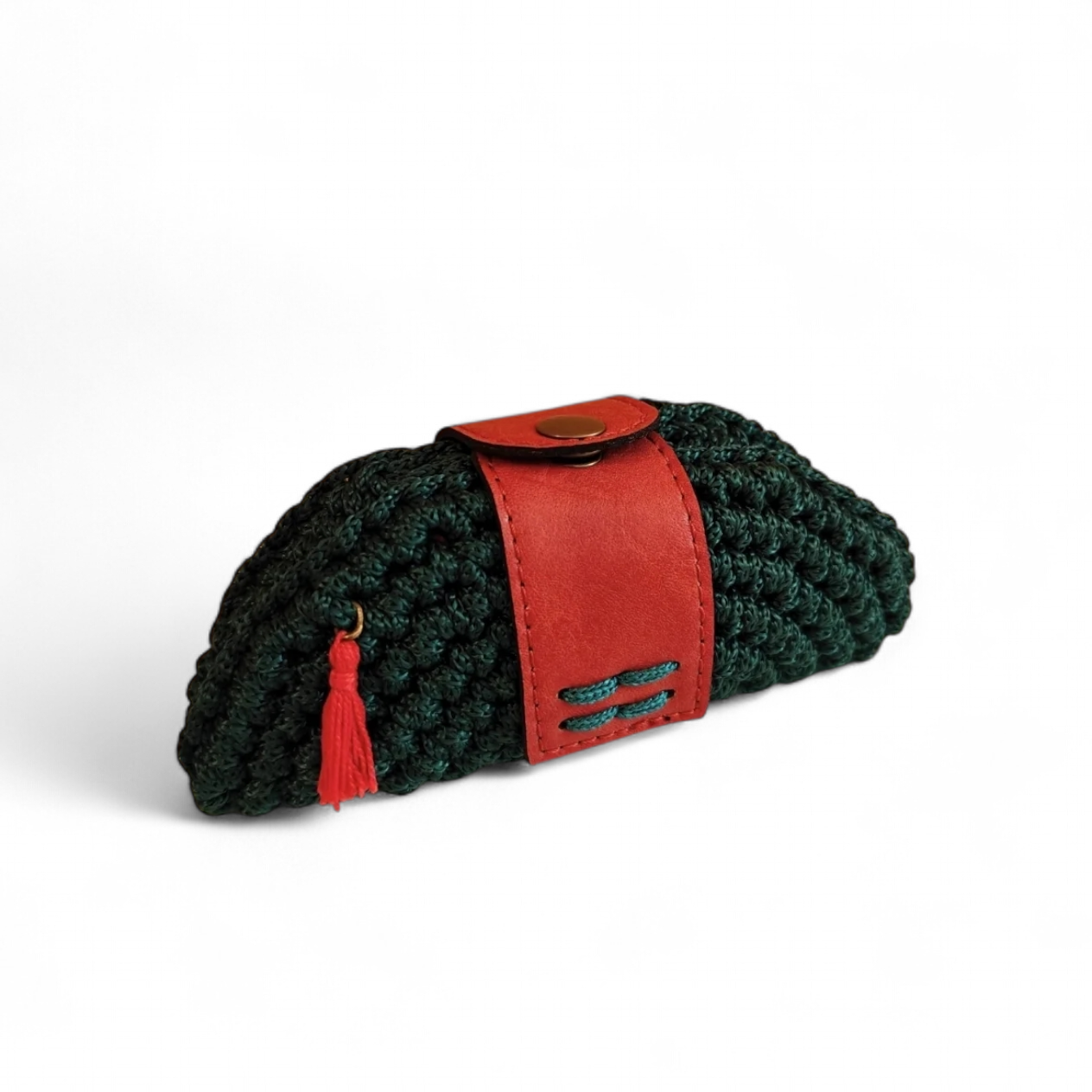 Custommade - Halfmoon ολοπλεκτο πορτοφολάκι πράσινο κυπαρισσί-κόκκινο