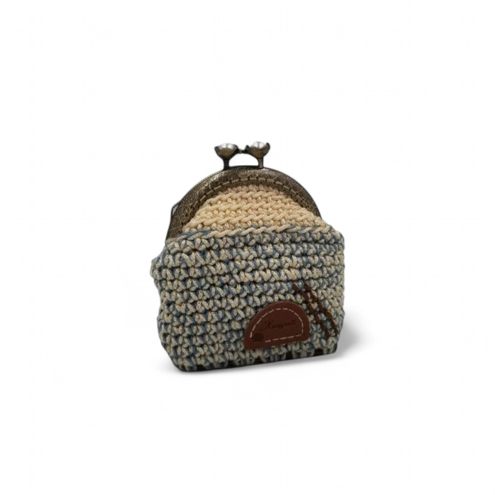 Χειροποίητο πλεκτό πορτοφολάκι με μεταλλικό πλαίσιο Εσωτερικά : φόδρα Κούμπωμα : κλικ κλακ (μπρονζέ) με λευκές περλίτσες Πάτος : ξύλινος by Qrtos Creations