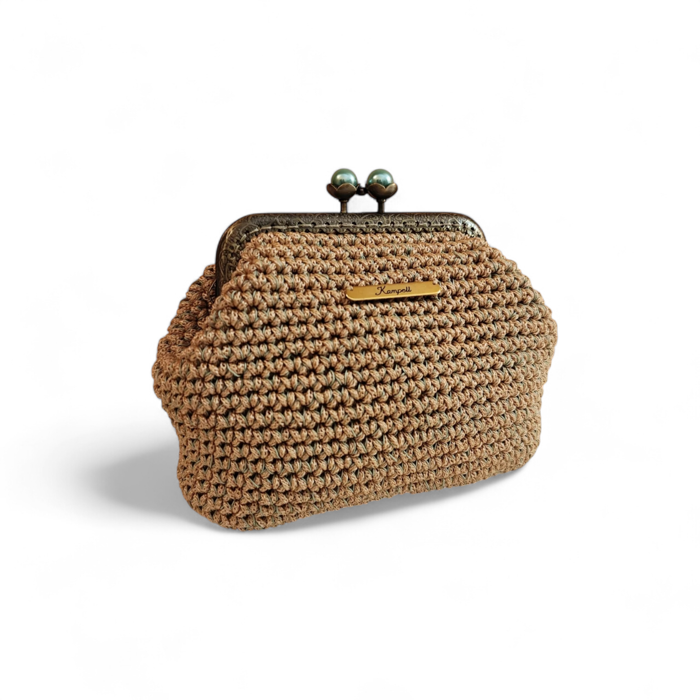 Χειροποίητο πλεκτό πορτοφολάκι με μεταλλικό πλαίσιο Εσωτερικά : φόδρα Κούμπωμα : κλικ κλακ (μπρονζέ) με βεραμάν περλίτσες Πάτος : ξύλινος by Qrtos Creations
